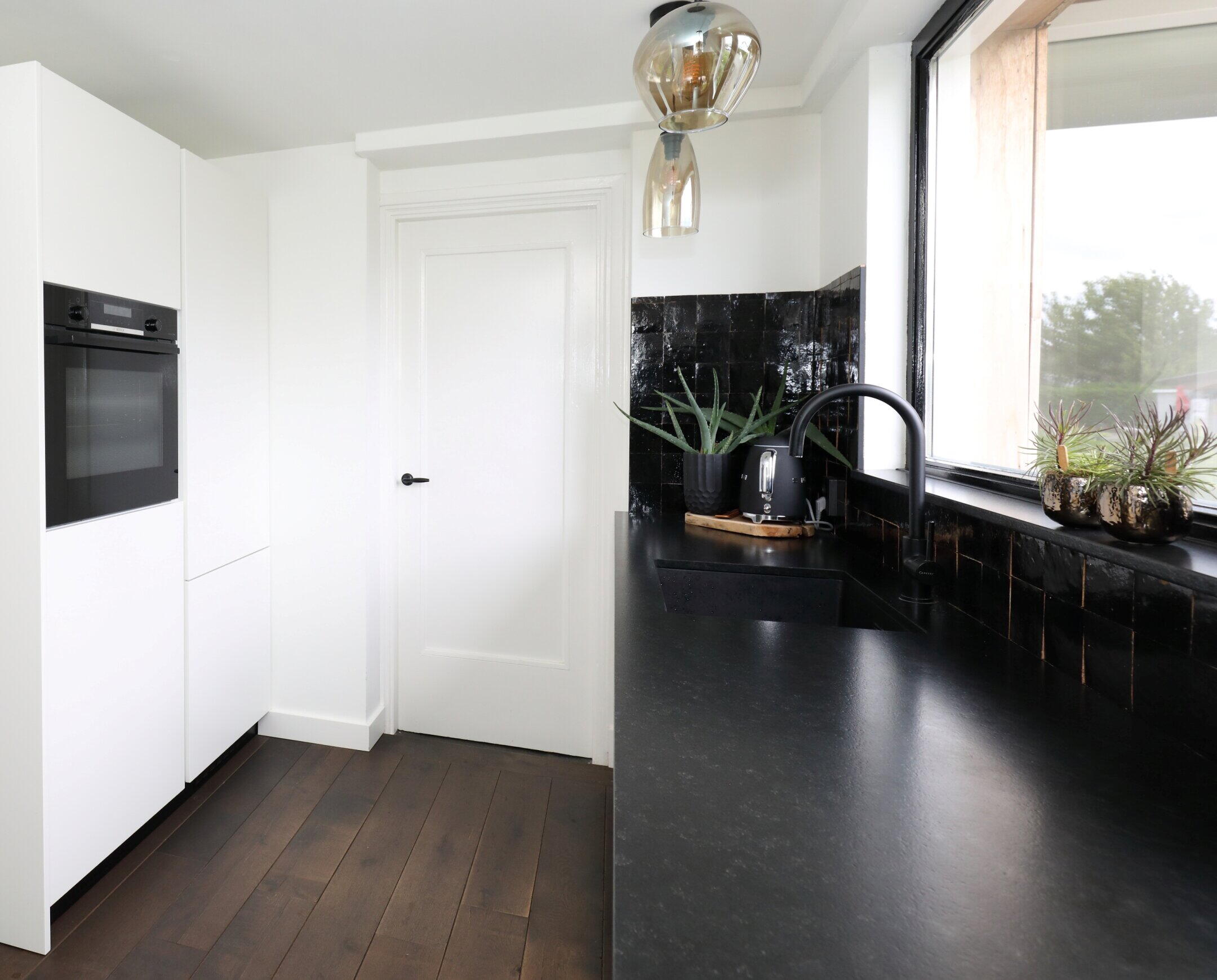 - Open keuken met luxe granieten werkblad en slimme inbouwapparatuur: