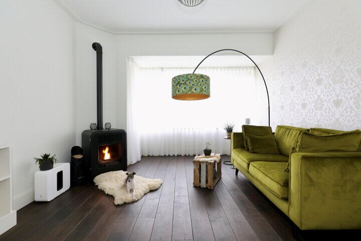 - Verwarming geschiedt middels een pellet kachel en warmtepomp-airco’s, waarmee je het hele jaar door comfortabel woont zonder gasaansluiting.
